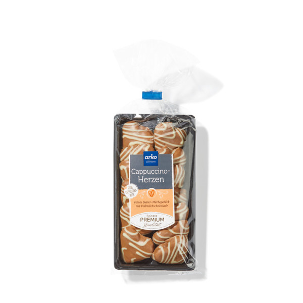 Die arko Himbeer-Herzen verbinden feines Butter-Mürbegebäck mit einer fruchtigen Himbeernote und einem Hauch Schokolade. Die zarten Herzgebäcke sind knusprig, aromatisch und so köstlich, dass man kaum widerstehen kann.