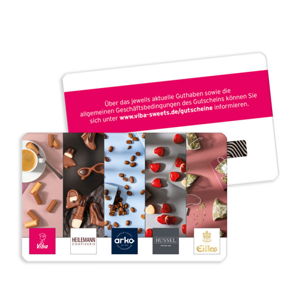 Genuss verbindet! Mit der Gutscheinkarte können Sie süße Spezialitäten in vielen Filialen von Heilemann, Viba, Arko, Hussel und Eilles kaufen oder auch einen Mitmach-Confiserie Kurs in der Viba Nougat-Welt Schmalkalden sowie in der Erlebnis-Confiserie in Erfurt buchen. In den jeweiligen Restaurants & Cafés ist dieser ebenfalls für das große Kuchen-, Kaffee- und Eisangebot einlösbar.