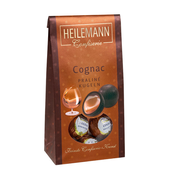 Gefüllt mit feinwürzigem, französischem Cognac und umhüllt von herber Edelbitter-Schokolade schmecken die Heilemann Cognac Praliné-Kugeln sehr intensiv und vollmundig. Lassen Sie sich überraschen wie dieser Hochgenuss auf Ihrer Zunge zergeht. Die dunkle Edelbitter-Schokolade entfaltet ihr Aroma erst nach dem Aufknacken und anschließend fließt eine leicht flüssige Cognac-Creme über Ihren Gaumen. Köstlich und aromatisch schmecken diese Kugeln und sind für gelegentliche Genießer, aber auch für jahrelange Cognac-Kenner, die perfekte Nascherei für zwischendurch. Der intensive Geschmack unserer Cognac-Kugeln bleibt auch über den Verzehr hinaus erhalten. Im Beutel enthalten sind 6 Heilemann Cognac Praliné-Kugeln à 15 g.