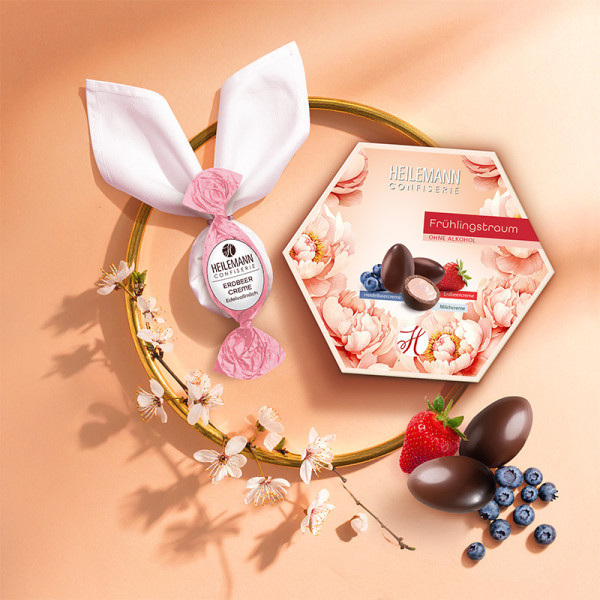 Der Heilemann Frühlingstraum Schoko-Eier ohne Alkohol vereint feine Edelvollmilch-Schokolade mit feinen Cremefüllungen in fruchtig-cremigen Variationen. In der eleganten Geschenkpackung erwarten Sie neun köstliche Schokoladen-Eier, liebevoll verpackt und verziert mit edlen Blumenmotiven – ein echtes Highlight für die Sinne.