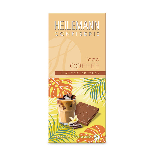 Die HEILEMANN Sommer-Schokolade ICED COFFEE enthält geschrotete Röstkaffeebohnen, die jedes Stück zu einem crunchigen Kaffee-Erlebnis werden lassen. Diese Sorte schmeckt wie feinster Eiscafé mit feiner Vanille-Note!