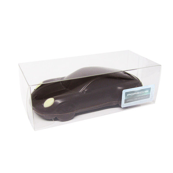 Ein Schokoladen Porsche 911 Carrera in Miniatur, aus edelster Zartbitterschokolade, liebevoll verpackt und dekoriert. Die Lichter des Porsche erstrahlen in weißer Schokolade. Perfekt für Genießer teurer Autos und hochwertiger Schokolade. Dieses Auto ist bezahlbar und sieht seinem Original zum Verwechseln ähnlich.