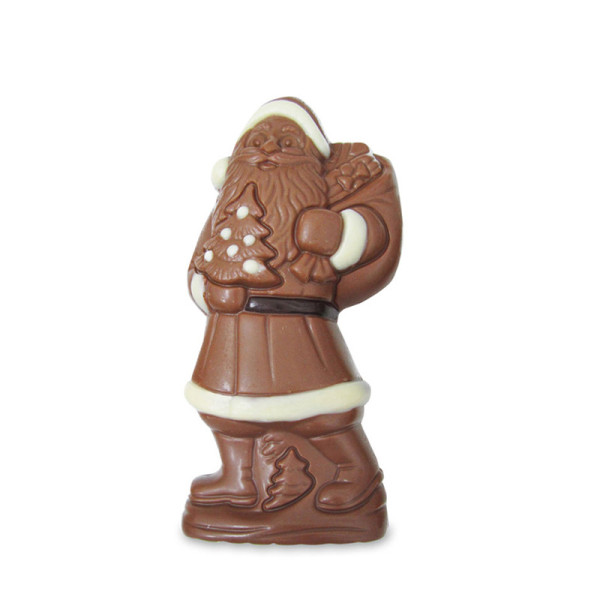 Was wäre Weihnachten ohne den Heilemann Weihnachtsmann? Mit Liebe zum Detail wurde der freundliche Weihnachtsmann für Liebhaber zart schmelzender Edelvollmilch-Schokolade kreiert. Der feine Schmelz der Schokolade und die liebevoll durchdachten Details machen den Weihnachtsmann so einzigartig. Dekoriert mit weißer und Edelbitter-Schokolade an Gürtel, Mantel, Mütze und Tannenbaum. Als Dekoration in der Weihnachtszeit oder im Nikolausstiefel darf dieser feine Weihnachtsmann nicht fehlen.