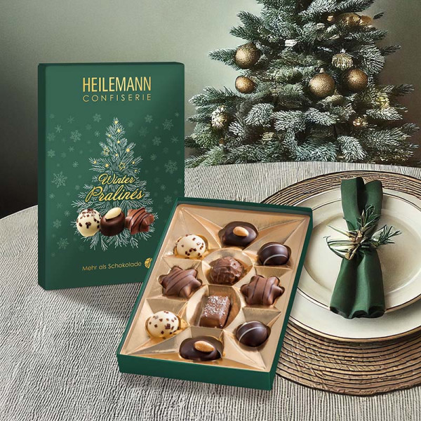 Versüßen Sie sich die Winterzeit: Die Pralinen-Komposition "Merry Christmas" besteht aus zehn feinen Winter-Pralinen für ganz besondere Glücksmomente. Die kleinen, handverlesenen Pralinen eignen sich besonders als süße Köstlichkeit zum Kaffee oder als hochwertiges Geschenk zu Weihnachten.