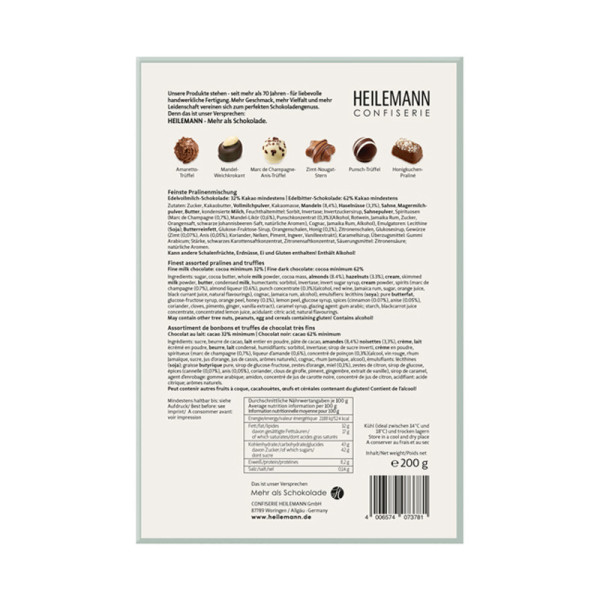 Versüßen Sie sich und Ihren Liebsten die Winterzeit: Die Komposition "Merry Christmas" besteht aus einer großen Auswahl feinster Pralinen für ganz besondere Genussmomente. Der große Pralinenkasten eignet sich besonders als hochwertiges Weihnachtsgeschenk oder als süße Köstlichkeit zum Anbieten und Teilen an den Festtagen. Genießen Sie die genussvollste Zeit des Jahres mit Pralinen von HEILEMANN.
