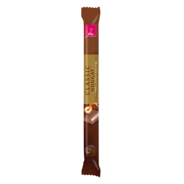 Bei den neuen Nougat-Schokoladen Sticks treffen zwei Genusswelten aufeinander: feinste Edel-Vollmilchschokolade gefüllt mit zart schmelzenden Nougat. Der feine, klassische Haselnussnougat prägt bei der Sorte Classic das unverwechselbar nussige und besonders beliebte Geschmacksbild. Der 40 g Stick eignet sich perfekt als Genuss für zwischendurch, als Snack an der Kaffeetafel oder zum dekorieren von Tortenkreationen.