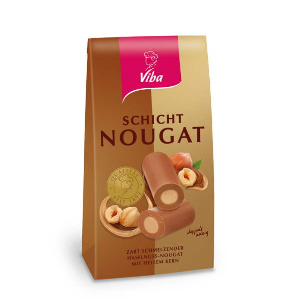 Erleben Sie das etwas andere Röllchen. Die Kombination aus hellem und dunklem Haselnuss-Nougat verführt nun in der beliebten Viba Mini-Form. Rund, klein und fein – genau das Richtige für gesellige Runden mit der Familie oder Freunden. Das zart schmelzende Schicht-Nougat Mini wandert dabei gerne in den Mund. 10 Minis à 10 g im praktischen Beutel für ein lang anhaltendes Nougat-Vergnügen.